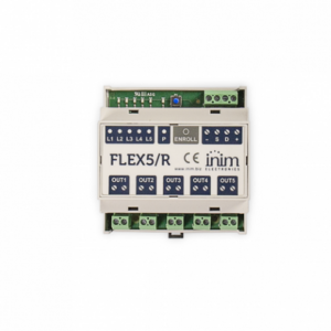 Espansione di uscita a tensione di rete 230V. 5 terminali programmabili come Triac, Relè o Dimmer.