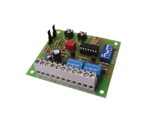 La scheda C1TIME001 è stata progettata per fornire diverse funzioni temporizzate gestite da microcontrollore. Lunità è dotata di due ingressi indipendenti e due uscite relè in scambio capaci di pilotare ognuna carichi fino a 3A 28Vcc o 120Vca. Una serie di DIP-SWITCH permette di selezionare il programma scelto, il fondo scala delle temporizzazioni e il tipo di ingresso rilevato se sensibile a segnali positivi o negativi. Tramite due jumper è possibile inoltre selezionare se i due ingressi sono di tipo a dare o a mancare. Un ulteriore ingresso di reset, sia a bordo scheda che remotizzabile, permette di disattivare le uscite e inizializzare la scheda in qualsiasi momento. Due potenziometri, infine, permettono di regolare le temporizzazioni da 0 a 60 secondi o da 0 a 60 minuti a seconda del fondo scala selezionato. Le funzioni disponibili sono le seguenti: doppia segnalazione temporizzata, da impulsivo a bistabile e da bistabile a impulsivo, impulso monostabile, segnalazione a doppia temporizzazione con memoria, segnalazione con preallarme temporizzato e allarme immediato, relè passo passo temporizzato, segnalazione su ingressi in AND in finestra temporale, segnalazione a fine conta impulsi con abilitazione.