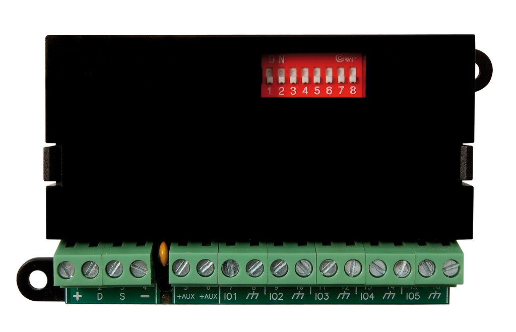 Il modulo Flex 5 è utilizzabile per ampliare il numero di zone o di uscite del sistema. Questo modulo riceve l’alimentazione e i comandi dal bus. L’alimentazione è protetta così come le sue due uscite di alimentazione ausiliaria. I 5 terminali messi a disposizione sono utilizzabili come ingressi o come uscite, i primi 4 possono gestire direttamente rivelatori inerziali/tapparella. Se programmati come uscite i terminali possono assorbire fino a 150 mA