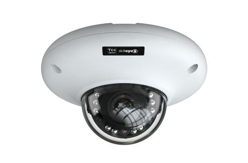 Telecamera Minidome Flat IP 4Mpxls TKH SkillEye, Sensore 1/3″CMOS Progressive Scan, Risoluzione 4MP (2592×1520pxls)/25fps, H265+/H264+/MJPEG, Triplo Stream, Day/Night (ICR), WDR(120dB), Sensibilità 0.005 lux @ F1.6 AGC ON o 0 lux con IR ON, Ottica 2.8mm HFOV 95.3°, LEDs 10-20mt, 1In Audio, 1 ingresso Audio con microfono incorporato, Micro SD up to 256GB, ONVIF Profile S, 3D-DNR, Defog, BLC/HLC, 12VDC/PoE 6W, IP66, Case Metallico. Supporto Analisi Video ADVANCED VCA 2.0 a bordo: Attraversamento Linea e Intrusione in Area con classificazioni uomo/veicolo, Rilevazione/Riconoscimento Volto, Oggetto Rimosso/Abbandonato, Metadata, Conteggio Persone, Loitering, HeatMap, Anomalie Segnale Video. Installazione su tre assi. Dimensioni Ø 110 x H 59,8 mm. NDAA Compliance.