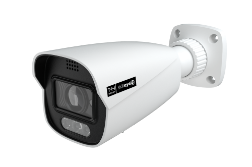 Telecamera TKH Skilleye Bullet IP 6MPxls, Sensore 1/2.5″ CMOS Progressive Scan, Risoluzione 6MPxls 3200×1800/25fps, H.265+/H.264+/MJPEG, Triplo Stream, Day/Night (ICR), Sensibilità 0.008 lux @F1.6 AGC ON o 0 lux con IR ON, WDR 120dB, 3D DNR, BLC/HLC. Ottica Varifocale Motorizzata 2.8-12mm HFOV 108° ~ 36°, LEDs 30-50mt e Luce Bianca 30-40mt. ONVIF Profile S. Supporto Analisi Video ADVANCED VCA 1.0 a bordo: Attraversamento Linea e Intrusione in Area con classificazioni uomo/veicolo, Anomalie Segnale Video. Supporta doppia illuminazione (LEDs IR e Luce Bianca), la funzione P2P (Peer-to-Peer) e la tecnologia Dual System per aggiornamenti firmware. Slot Micro SD up to 256GB. 1 ingresso Audio e Microfono a bordo. 12VDC/PoE 9,5W, IP67/IK10, Case metallico. Staffa passaggio cavi interno. Installazione su tre assi. Dimensioni 217,8 x 80,5 x 80,5 mm. NDAA compliance.